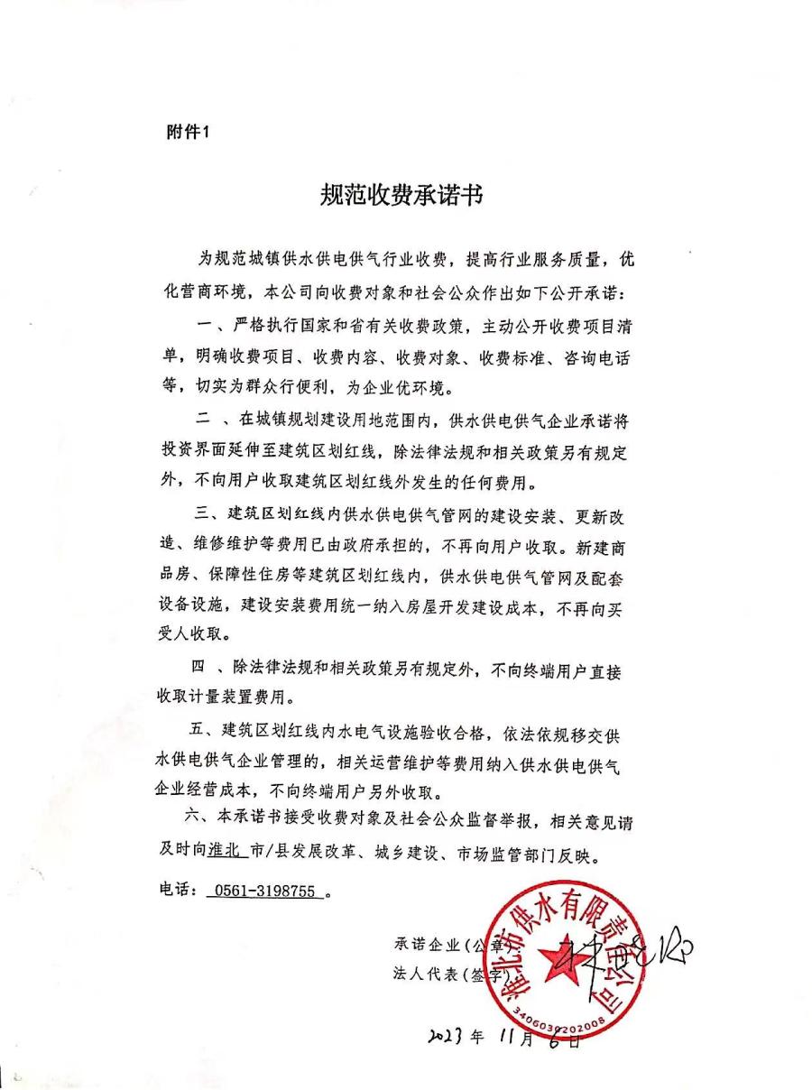 淮北市供水有限責(zé)任公司規(guī)范收費(fèi)承諾書(shū)