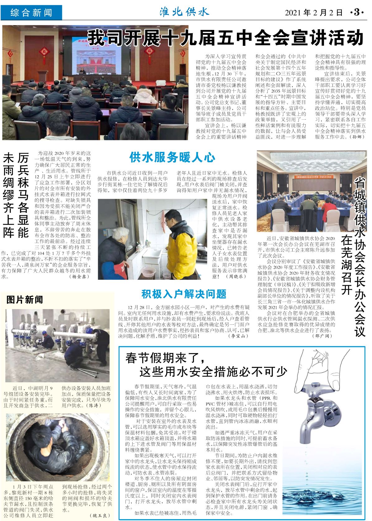 淮北市供水有限責(zé)任公司 地址:淮北市南黎路128號 郵編:235000 咨詢服務(wù)報(bào)修電話:0561-96600 (7x24小時服務(wù)) 監(jiān)督投訴電話: 0561-3052780 行業(yè)主管監(jiān)督投訴電話(市住建局): 0561-3022217 皖I(lǐng)CP備20012529號-1 皖公網(wǎng)安備 34060002030005號 技術(shù)支持:相王科技